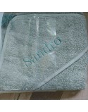 Cape de bain bébé personnalisée très douce et agréable pour la peau, réalisée en coton issu de l'agriculture biologique.