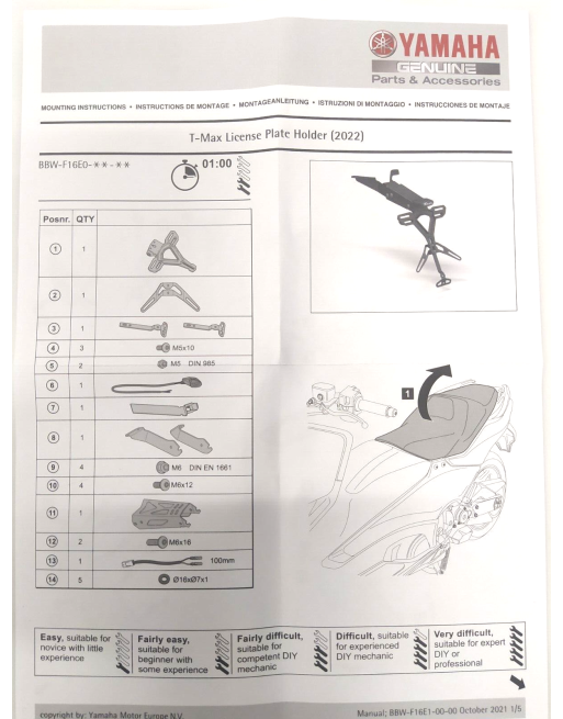 YAMAHA PORTE-PLAQUE D’IMMATRICULATION BBW-F16E0-0000