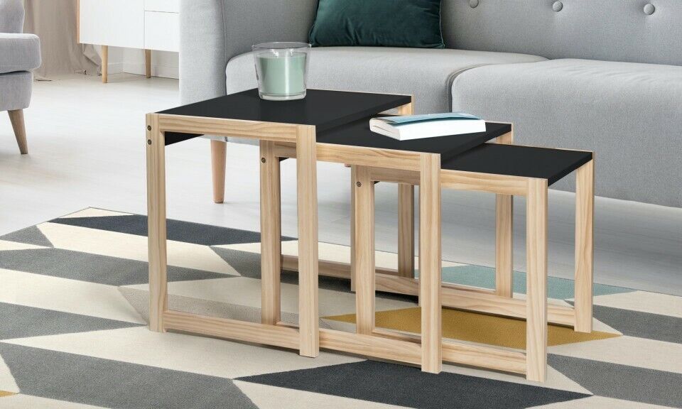 Matériaux : structure et pieds en bois de pin, plateau en MDF