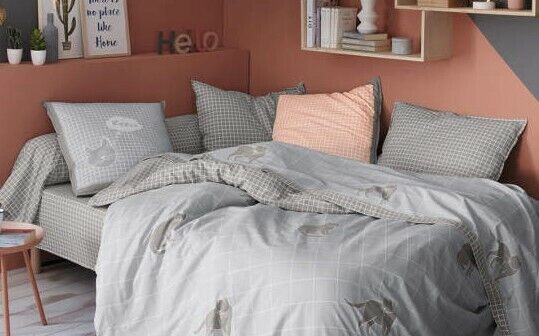 FR SAGET Taie d'oreiller pur coton je bulle carreaux gris/blanc 50 x 70 cm