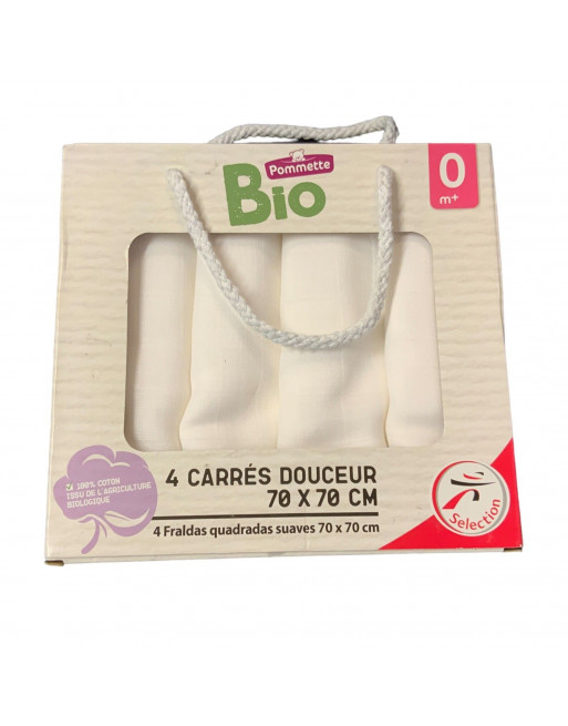 Pour le bien-être de votre bébé, Pommette BIO a sélectionné pour vous ces 4 carrés douceur 100% coton issu de l'agriculture biologique.