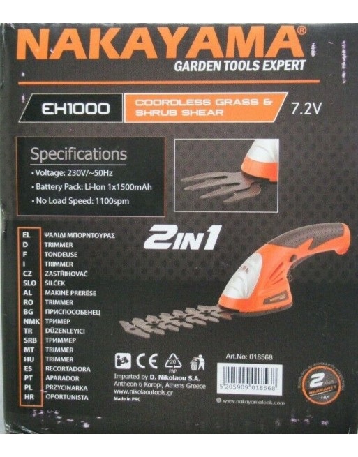 NAKAYAMA EH1000 TAILLE HAIE SANS FIL 2 EN 1 REF:018568 7.2V