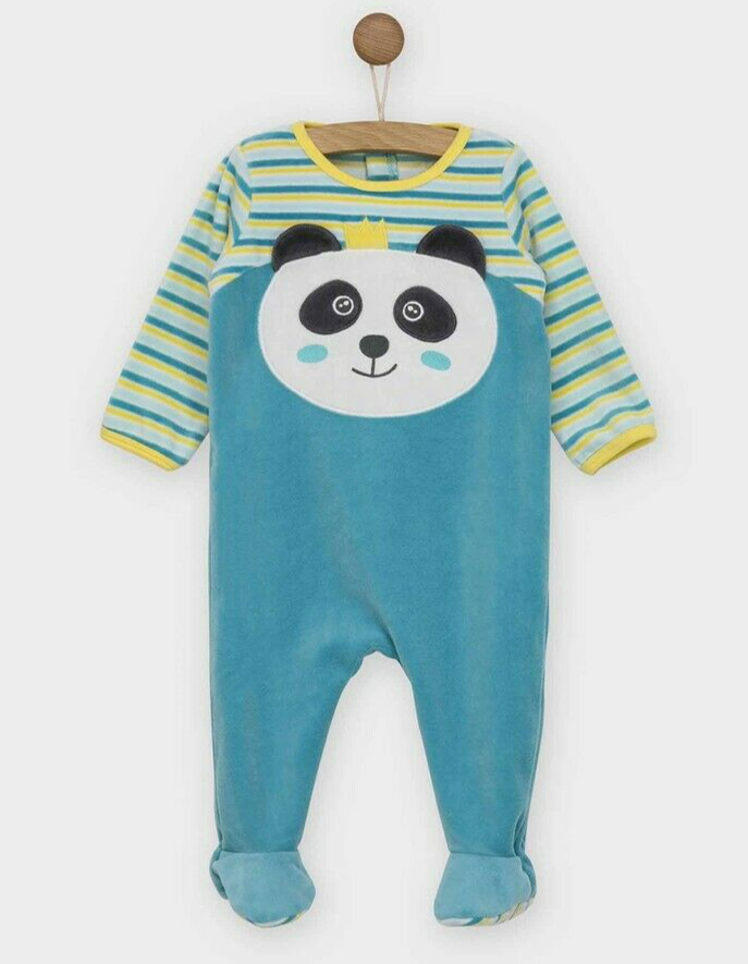 SERGENT MAJOR Grenouillère bleu rayé velours 100% coton Taille 3 mois