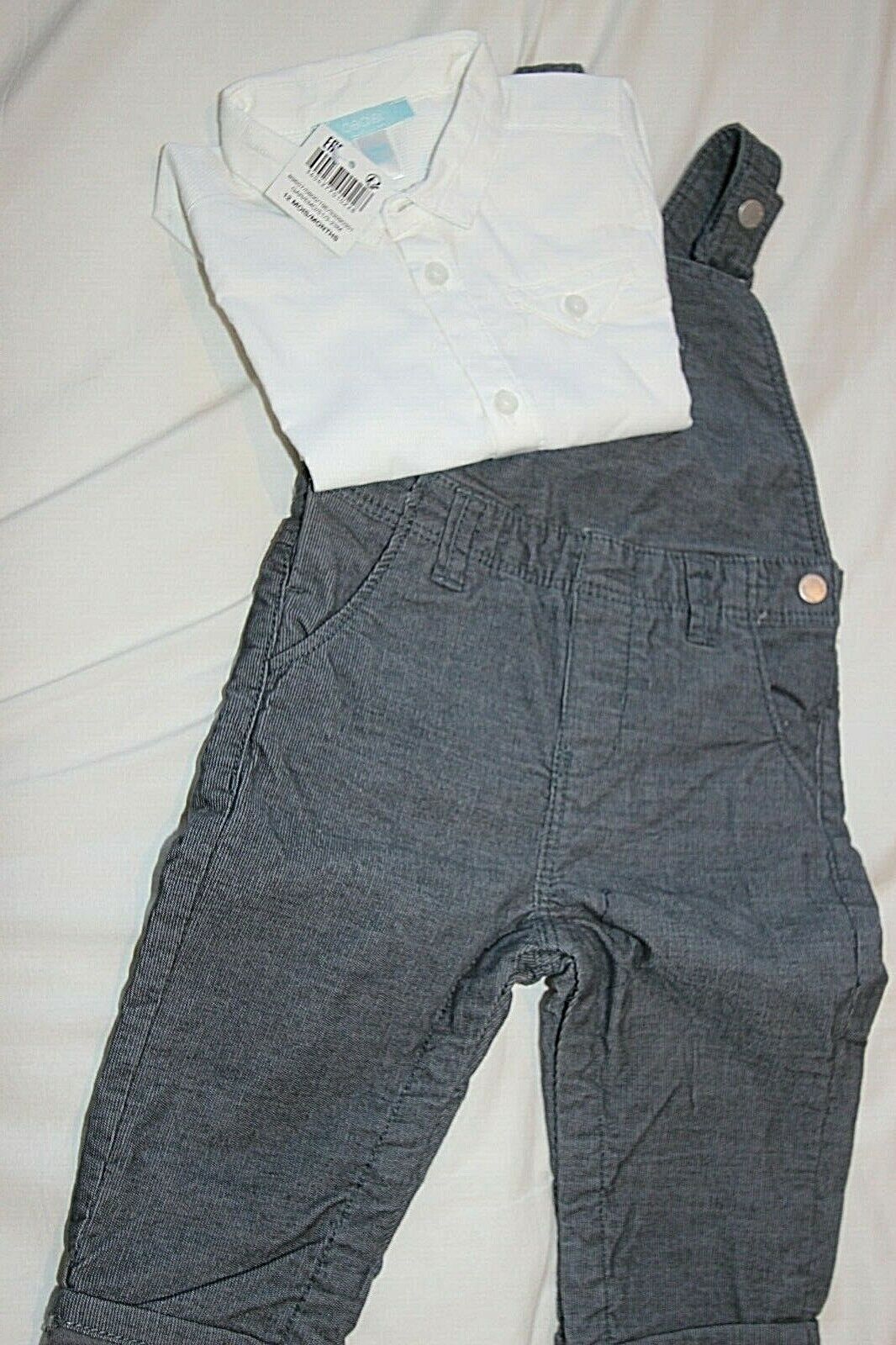 OBAIBI Salopette gris foncée 9 mois + Chemise cérémonie blanche 12 mois