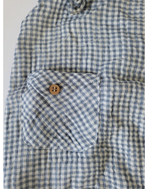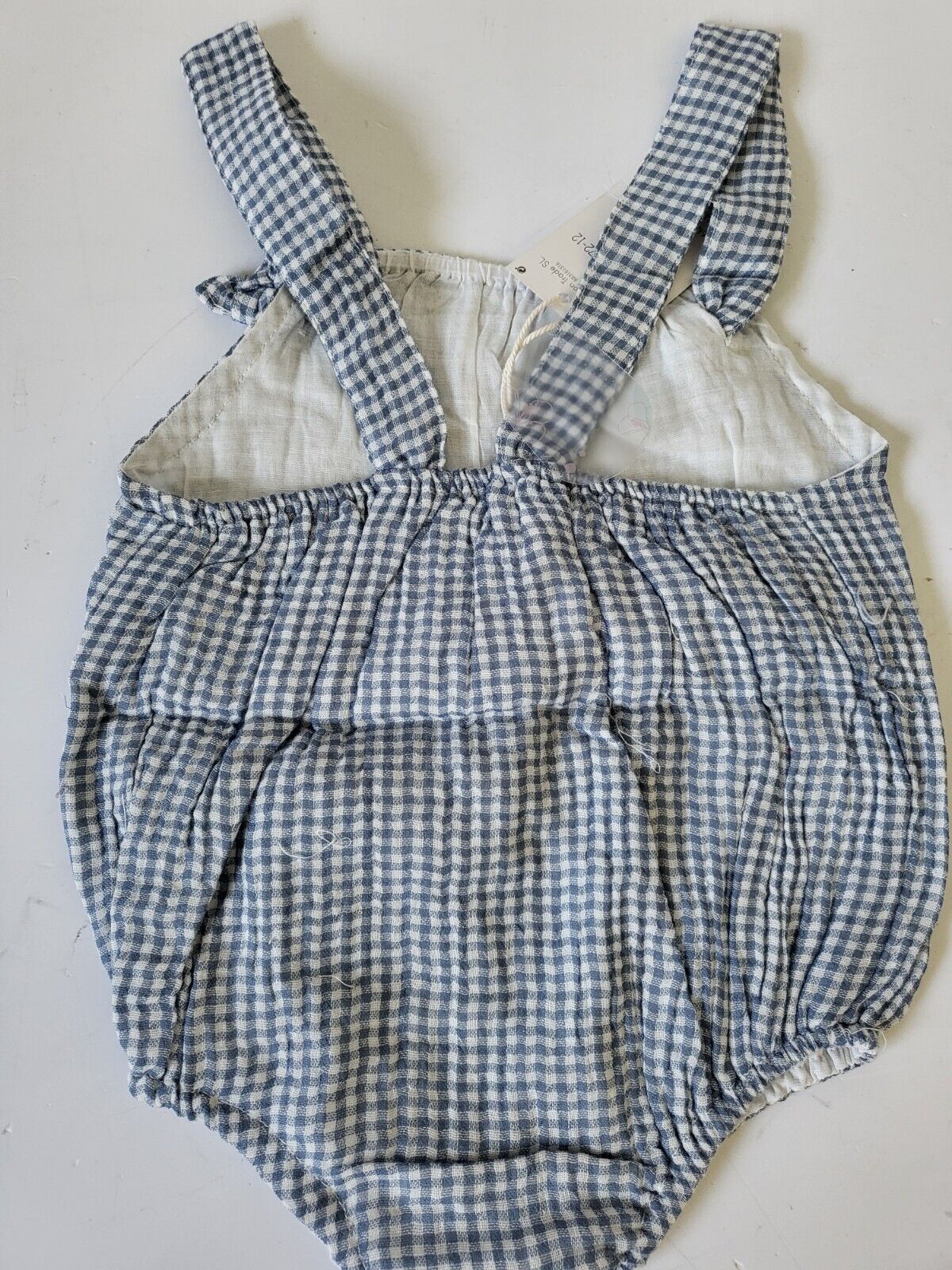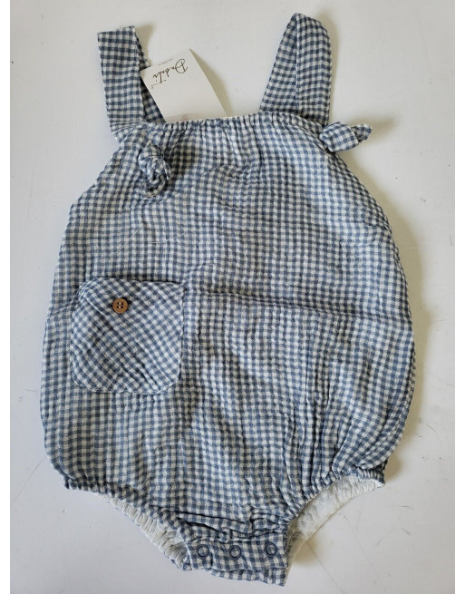 DADATI Barboteuse vichy bleu et blanc 100% coton léger Taille 1 an