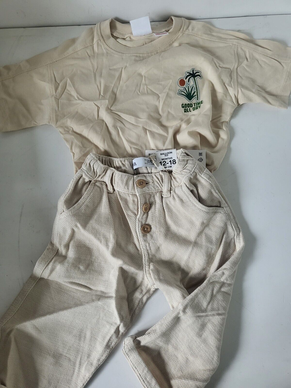 ZARA Ensemble pantalon tee shirt beige Taille 18 mois 86 cm