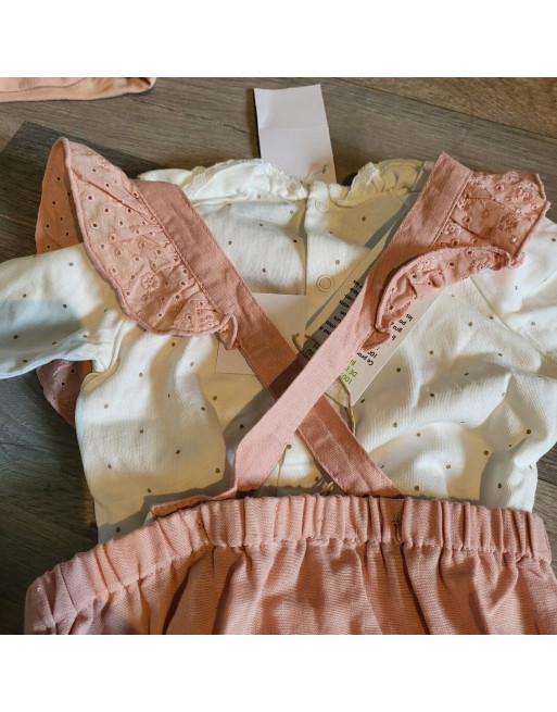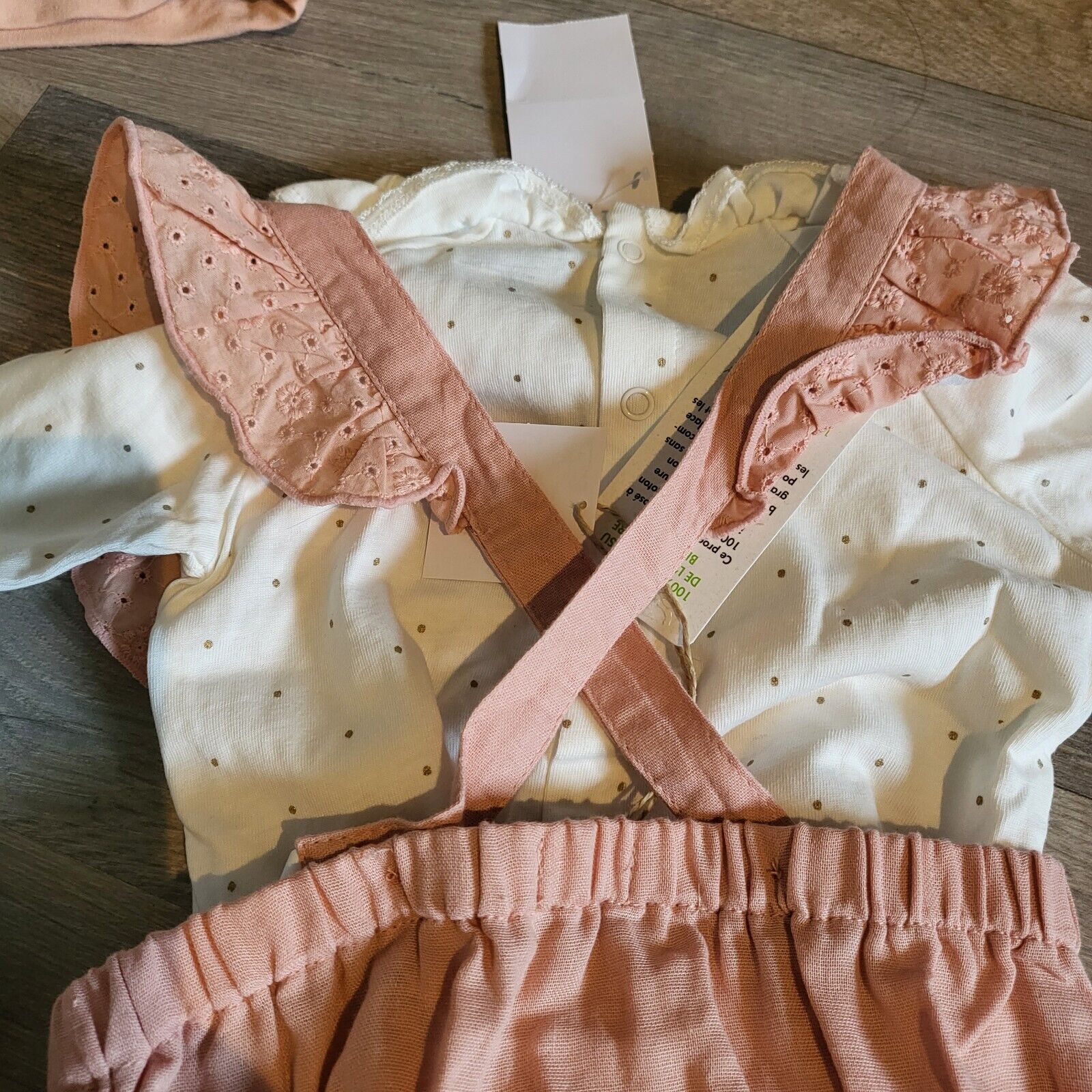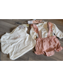 Ensemble pullover + t shirt + short bretelles rose + bandeau Taille 6 mois