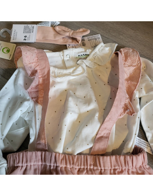 KIABI Ensemble pullover + t shirt + short bretelles rose + bandeau Taille 6 mois