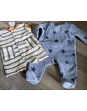 HEMA T-A-O Set combishort rayé bleu + pyjama bleu étoiles Taille 1 mois