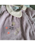 Pyjama velours pieds violet col rond