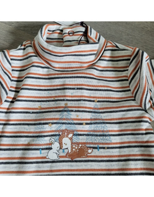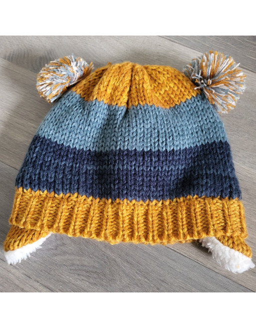 SERGENT MAJOR Body rayé col roulé + bonnet 2 pompons fourré Taille 6 mois