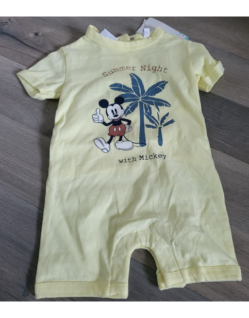 DISNEY combishort jaune Mickey + pull gris Bambi + casquette bleue Taille 6 mois