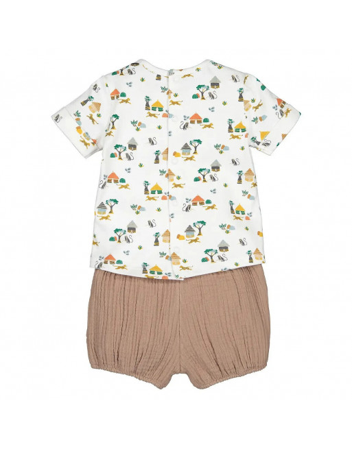 LA REDOUTE Ensemble short bouffant taupe + T shirt imprimé Taille 6 mois