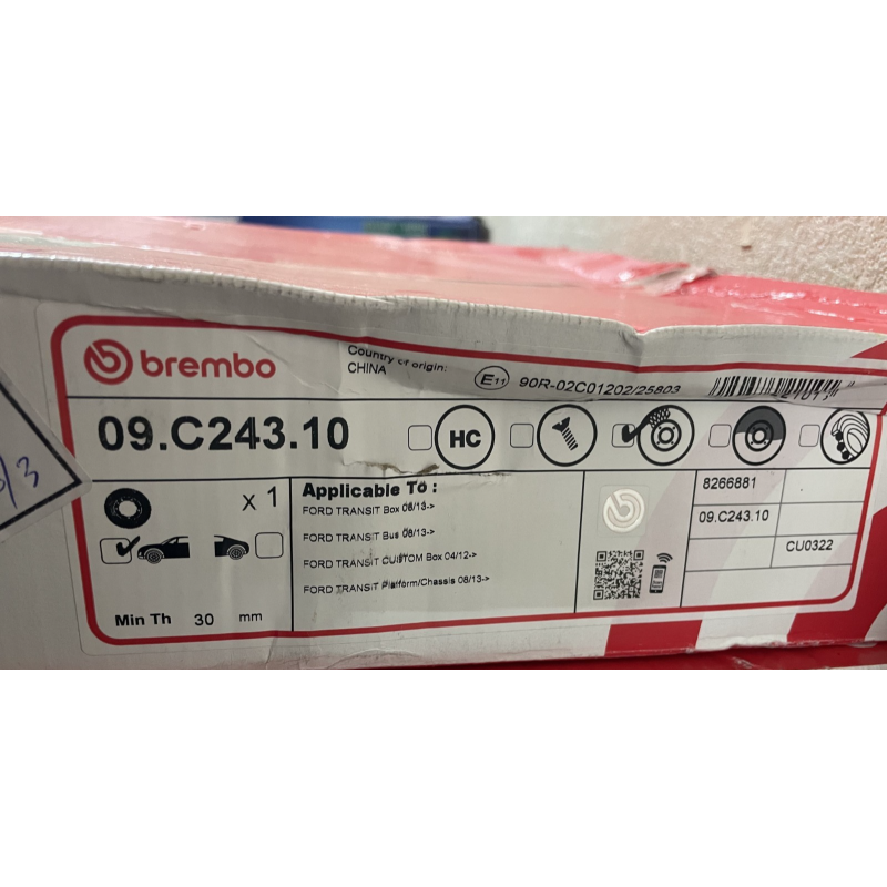 1X Disque de frein BREMBO 09.C243.10 pour TRANSIT V363 Fourgon 2 2017-2024