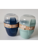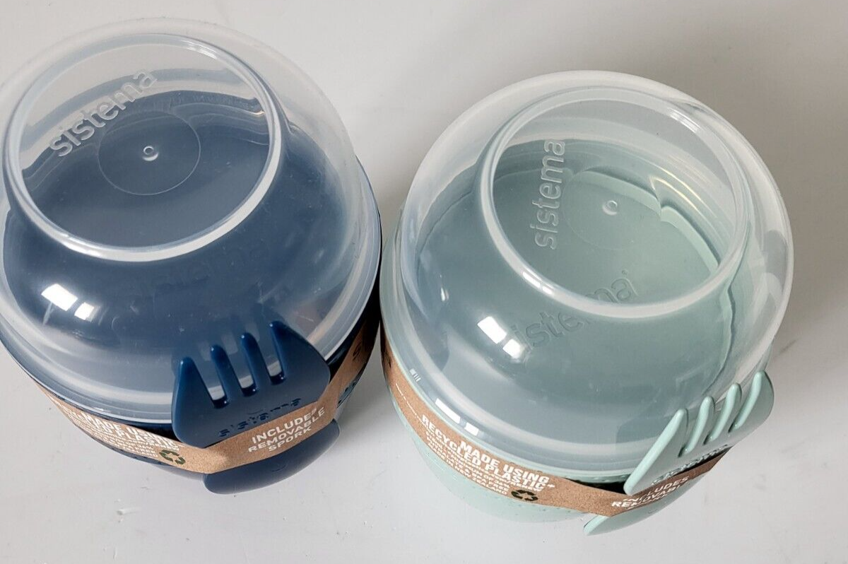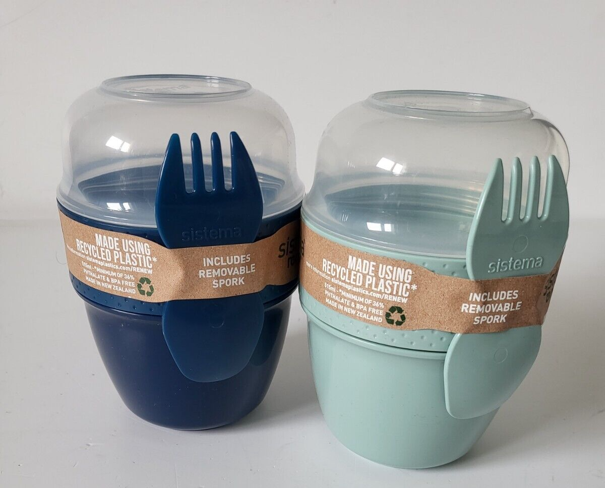 SISTEMA Lot de 2 contenants snack + fourchettes double compartiment 515 ml
