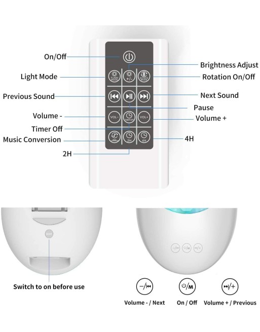 - Les veilleuses colorées et la musique douce créent facilement un environnement romantique, vous permettant, à vous et à votre famille, de bien dormir.