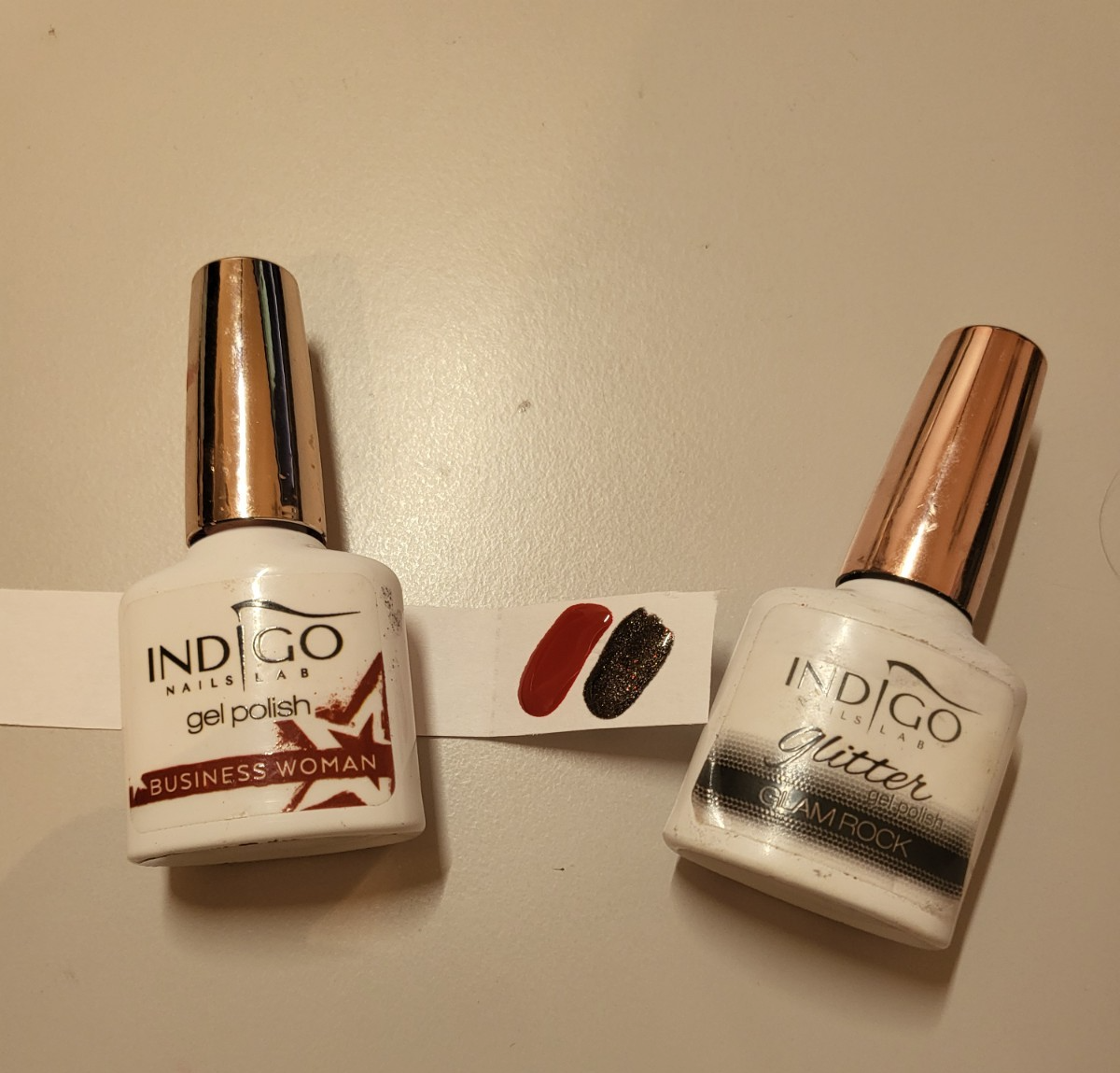 INDIGO Lot de 2 vernis à ongles semi permanent noir paillettes et rouge 7 ml