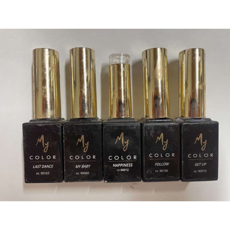 Ce lot comprend 5 vernis à ongles semi-permanent de la marque My Color, idéaux pour un fini professionnel et longue durée. Ces vernis offrent une couvrance parfaite et une brillance intense qui dure jusqu'à 3 semaines. Faciles à appliquer, ils nécessitent une lampe UV/LED pour durcir. Les teintes varient, allant des nuances classiques aux plus vibrantes pour s'adapter à toutes les envies.
