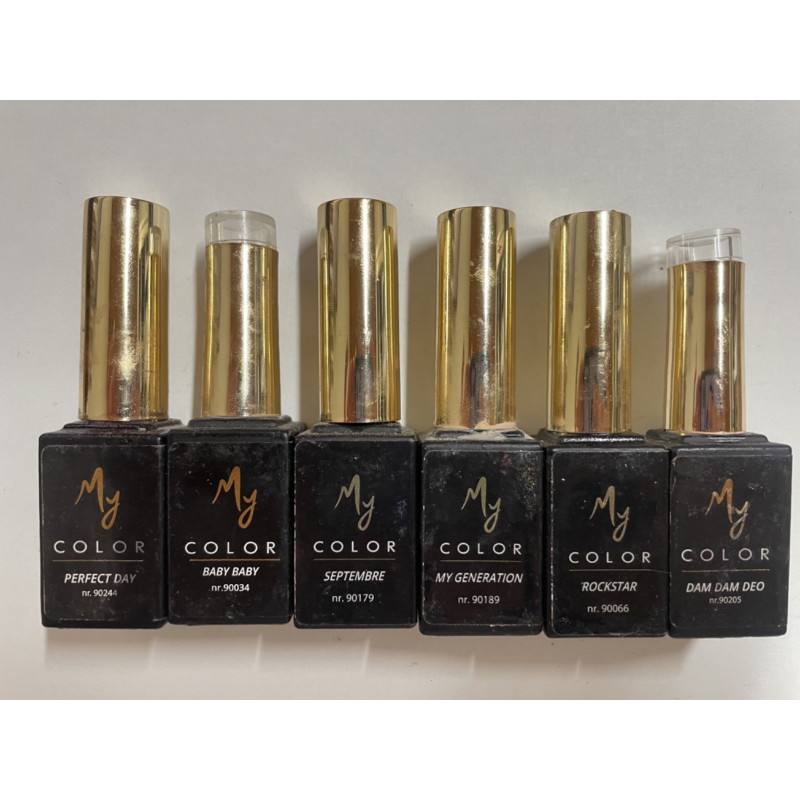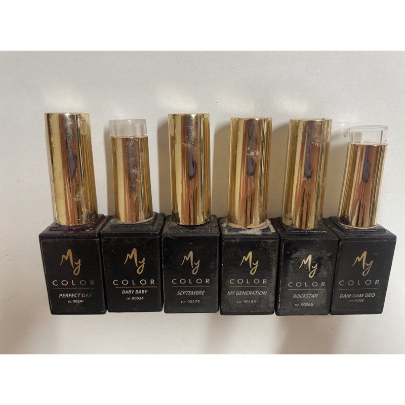 Ce lot comprend 5 vernis à ongles semi-permanent de la marque My Color, idéaux pour un fini professionnel et longue durée. Ces vernis offrent une couvrance parfaite et une brillance intense qui dure jusqu'à 3 semaines. Faciles à appliquer, ils nécessitent une lampe UV/LED pour durcir. Les teintes varient, allant des nuances classiques aux plus vibrantes pour s'adapter à toutes les envies.